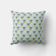 Coussin bleu avec motif. Des îles aux palmiers sont aménagées dans un motif à répétition.