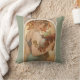 Un coussin décoratif avec l'illustration d'Alphonse Mucha (1860-1939), Fruit (1897). Portrait d'une femme tenant un panier de fruits avec poires, raisins et pommes.