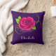 Illustration simple d'une rose rose avec des pétales verts et une tige tourbillonnant. Arrière - plan violet. Customisez avec votre nom ou votre texte.