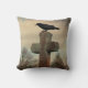 Un art désespéré sur un coussin d'une corneille gothique sur une vieille croix.