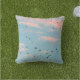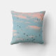 L'empreinte pastel, dalmate sur cet Oreillère à Throw a été créée à partir d'une photo originale de ZoeSPEAK d'un ciel bleu d'aqua, rempli de nuages roses bouffants et d'un troupeau d'oiseaux noirs. Les oiseaux deviennent des formes noires abstraites éparpillées dans l'eau douce et le ciel rose.