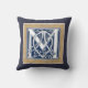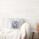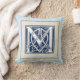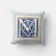 Une belle lettre céleste en relief décoratif illuminée de têtes de dragon gris sur un arrière - plan bleu foncé velouté. Ce coussin a une double bordure de motifs en pierre, la lumière avec un bord foncé sur un côté, qui est vénéré à l'arrière. Changez l'arrière - plan pour l'adapter à votre décor.