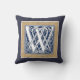 Une belle lettre céleste en relief décoratif illuminée de têtes de dragon gris sur un arrière - plan bleu foncé velouté. Ce coussin a une double bordure de motifs en pierre, la lumière avec un bord foncé sur un côté, qui est vénéré à l'arrière. Changez l'arrière - plan pour l'adapter à votre décor.