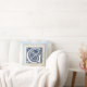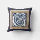 Une belle lettre céleste en relief décoratif illuminée de têtes de dragon gris sur un arrière - plan bleu foncé velouté. Ce coussin a une double bordure de motifs en pierre, la lumière avec un bord foncé sur un côté, qui est vénéré à l'arrière. Changez l'arrière - plan pour l'adapter à votre décor.