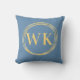 Coussin Initiales de Monogramme moderne Dusty Blue Gold Ce