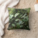 Un coussin avec une belle photo de différents plantes et feuilles dans un jardin botanique.