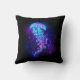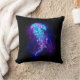 Grande méduse bleue, artistiquement dessinée, brillante, brillante, avec de longues tentacules sur arrière - plan noir avec bioluminescence violette. Méduse brillante.
