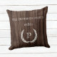 Coussin monogramme familial personnalisé au design en bois. Un cadeau idéal pour les familles avec le cabine forestier ou une ferme. Pour tous ceux qui aiment le design rustique.