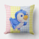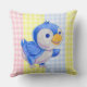 Jetez l'oreiller avec l'oiseau bleu mignon sur multi couleur en vichy arrière - plan.