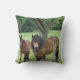 Quelques jolis chevaux qui broutent dans le pâturage. Un gros plan de l'un d'entre eux sur le dos du coussin.