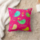 Joli mignon Oiseaux Aimer Coeurs Jeter Oreiller, conçu avec des oiseaux colorés et des coeurs d'amour en été couleurs pastel de jaune, turquoise, vert et crème contre un arrière - plan rose chaud vibrant. Sur le devant il y a le TEXTE PERSONNALISABLE qui peut être remplacé par votre nom ou autre texte. La conception est inversée à l'arrière. L'arrière - plan de ce joli coussin d'oiseaux peut être modifié si vous cliquez sur Modifier ce design et choisissez dans la palette de couleurs. Cet Oiseaux et les coeurs d'amour été Jeu d'oreiller ferait un grand ajout à votre collection de sacs - surtout au printemps et en été. Des cadeaux correspondants sont disponibles.