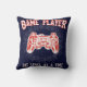 Les joueurs de jeu vidéo apprécieront ce coussin orienté de joueur de jeu de couleur rouge, blanche et bleue. La conception inclut un contrôleur visuel et le texte "joueur de jeu" et "un niveau à la fois". La couleur d'arrière - plan peut être changée en votre propre couleur préférée.