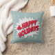 Illustration de style comique Happy Holidays avec cloche de Noël et décorations de flocons de neige sur arrière - plan bleu