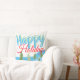Joyeuses vacances design coussin avec arbres. Les couleurs sont rouges, bleues et vertes. Le texte peut être personnalisé à n'importe quel message.