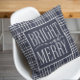 Bright and Joyeux, moderne typographie blanche, festive marine bleu et blanc plaid vacances motif jetez oreiller.