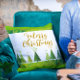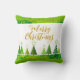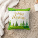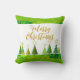 Joyeux Noël Arbres Joyeux Jeu d'or Script Jeter Oreiller présente des arbres de Noël modernes en vert et or avec le texte "Joyeux Noël" dans élégant script d'or. Parfait pour les cadeaux de Noël et la décoration de vacances. Conçu par ©Evco Holidays www.zazzle.com/store/evcoholidays