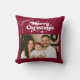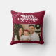 Coussin Joyeux Noël bordeaux photo arc dessiné main
