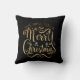 "Nous vous souhaitons un joyeux Noël". Belle typographie or sur arrière - plan noir jeter l'oreiller. Si élégant et chic pour votre décor de vacances. Imaginez ceci avec des faux coussins d'or. Ouah !
