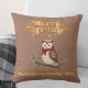 Un arrière - plan de couleur moka, texte doré. Joyeux Noël est écrit avec une police de style rétro. Décoré d'une chouette chouette portant une écharpe rouge. Personnalisez et ajoutez votre nom de famille et une année.