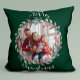 Joyeux Noël photo de famille Oreillère verte. Personnalisez le Coussin avec des photos de votre choix et créez un cadeau de Noël parfait!