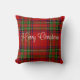 Joli coussin rouge plaid avec Joyeux Noël. Le plaid rouge est un beau motif de Noël traditionnel.