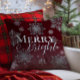 Coussin Joyeux rouge et flocon de neige brillant Noël