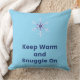 The perfect reminder to snuggle up and hibernate, or warm up after your latest outdoor adventure! This adorable, light blue pillow sits on your bed or sofa as a welcoming invitation to relax. Featuring a delicate, digitally updated antique photo of a real snowflake, and the inviting phrase "keep warm and snuggle on," it's designed to bring comfort and a touch of winter charm to any space.