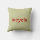 Image graphique d'un vélo rouge. Au dos du coussin, vous lisez "vélo" en lettres rouges. Vous pouvez choisir (customiser le bouton) parmi d'autres couleurs du coussin