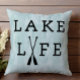 Notre coussin personnalisé orné des mots "Lake Life" en noir sur un arrière - plan bleu/vert doux. Découvrez notre gamme complète de produits dans notre boutique Zazzle.