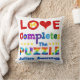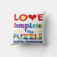 L'autisme inspirationnel cite, L'amour complète le puzzle, avec des pièces colorées de puzzle de l'autisme et un beau papillon pour soutenir les enfants autistes et leurs familles.