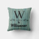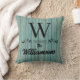 Sur cet ensemble élégant de coussins sont turquoises planches de bois rustique bleu avec une lettre et nom de famille que vous pouvez customiser pour le rendre unique. Vibes de ferme rustiques.