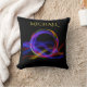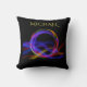 coussin noir multicolore avec le nom de l'enfant. Une couverture de toison correspondante est disponible.