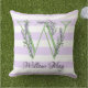 Coussin Lavande clair violet bandes blanches monogramme