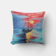 Ce coussin est 20"" le carré x20. Appréciez-le est matin, est pas loin un bateau et il semble être abandonné comme silhouette foncée semble se plier au soleil. À bord et au-dessous de la plate-forme est quelqu'un bien que ne puisse pas être vu. Les cieux rouges, observent l'avertissement. Calmes marins d'or et d'aqua et soumettent des contrastes avec des réflexions de la mer foncée noircie avec le rouge.