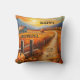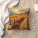 Coussin artistique coloré avec un paysage de campagne automnale avec une ferme et des citrouilles au coucher du soleil. Idéal pour créer une atmosphère Thanksgiving ainsi qu'un style chaleureux et accueillant à travers l'automne.