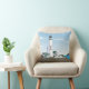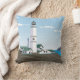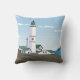 Ce dessin présente un phare blanc, vert et noir qui surplombe la mer. Le ciel est bleu avec quelques nuages. Des maisons blanches aux toits verts entourent le phare. L'arrière du coussin est le même que l'avant. Ce design est disponible sur différents styles et tailles.