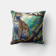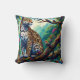 Un magnifique Throw Oreiller est doté d'un majestueux léopard qui se dresse sur une branche vibrante et tortueuse, entourée d'oiseaux tropicaux colorés et d'un feuillage luxuriant, incarnant une atmosphère de jungle animée.