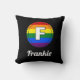 Lettre F Initial & Nom Gay pride Monogramme Arc-en-ciel - Oreiller à lancer noir. Cette conception circulaire comporte une lettre F monogrammée blanche sur un Arrière - plan de la LGBTQ Pride Flag. Ajoutez un nom à ce coussin afin que vous puissiez faire quelque chose d'unique et personnel pour votre décor maison. Super pour vous ou une personne spéciale dans votre vie.