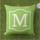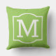 Le coussin d'accent extérieur carré élégant et classique dispose d'un premier monogramme avec un cadre décoratif simple en blanc avec couleur arrière - plan vert citron. Customisez l'arrière - plan pour coordonner votre décoration extérieure.