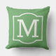 Le coussin d'accent extérieur carré élégant et classique présente un premier monogramme avec un cadre décoratif simple en blanc avec une couleur arrière - plan verte feuillue. Customisez l'arrière - plan pour coordonner votre décoration extérieure.