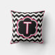 Lettre T. Joli monogramme (unique en première ligne) jeter l'oreiller. Bandes en zigzag noir et blanc (chevron), avec des détails blancs et fuchsia et une seule initiale au centre. Nos oreillers à jetons sont offerts en trois tailles : carré 16 po x 16 po, carré 20 po x 20 po, ou coussin lombaire de 13 po x 21 po, et en coton ou polyester. Produite par des mères célibataires ayant un emploi durable aux États-Unis, votre achat de coussin sur mesure contribue à briser le cycle de la pauvreté pour les mères célibataires et leurs enfants pendant qu'il est beau dans votre maison! De Scarribaby Design, soutenu par la garantie Zazzle.