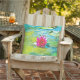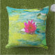 Un nénuphar fuchsia au feuillage vert citron dans une eau turquoise.