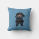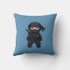 Adorable chubby yet fearsome looking little ninja is dressed in black outfit and carrying katana - traditional Japanese sword.