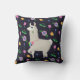 Un lama moelleux, drapé dans un collier de fils vibrant, pose sur un fond d'onyx profond orné d'un motif de fleurs vives dans les tons orange, rose, bleu et vert. Cette coussin ravissante apporte une touche ludique et joyeuse à toutes les chambres.