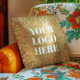 Bordure de parties scintillant carré arrondie en or Faux et art numérique en feuille métallique (imprimés comme une photo sur ces oreillers jetés carrés). Il y a de la place pour un nom ... vous pouvez ajouter du texte le long du bord de votre image de logo. Cet art numérique fonctionne le mieux avec une image de logo PNG avec des zones transparentes.