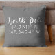 Jetez l'oreiller saisonnier avec la longitude du pôle Nord et les coordonnées de latitude. Police blanche sur arrière - plan gris