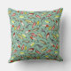 Cet oreiller à jetons carré a des illustrations de leurres de pêche inspirées de leurres de pêche vintages dans les tons rouge et jaune sur un arrière - plan turquoise pâle.