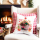Ce Coussin photo de Noël présente un design de maison en pain d'épices ludique. Avec un mélange de couleurs joyeuses et de charme festif de Noël. Correspondance d'objets dans notre collection de Noël Maison de pain d'épices