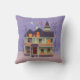 Des citrouilles en peluche et des fantômes espiègles habitent la maison Jack-o-lanterne d'Halloween. Retournez le coussin pour révéler l'arrière de la maison où un squelette délicieux est en train de napper sur le porche arrière. Illustrations originales de l'artiste Noël Snow.