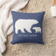 Maman et bébé ours taie d'oreiller pour la décoration de la nurserie. Au dos de l'oreiller a un motif à pois blancs sur un oreiller bleu.